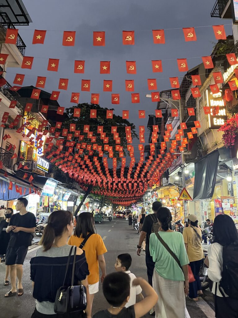 自国・ベトナムの国旗と、ソ連の国旗が交互に並んでいます