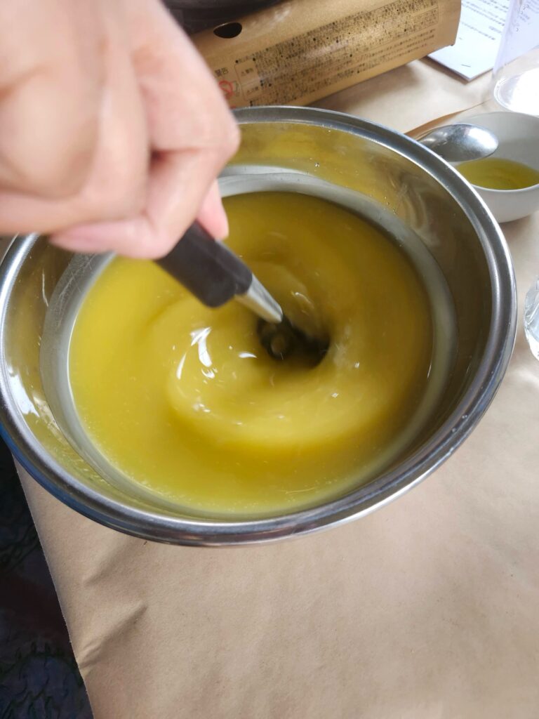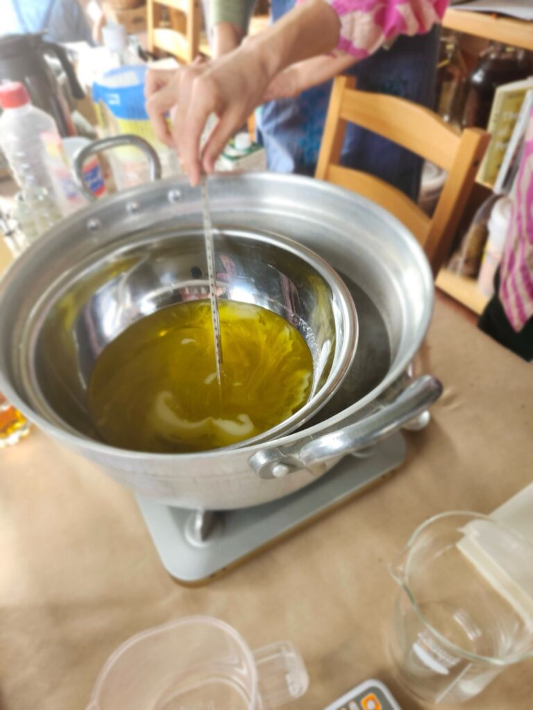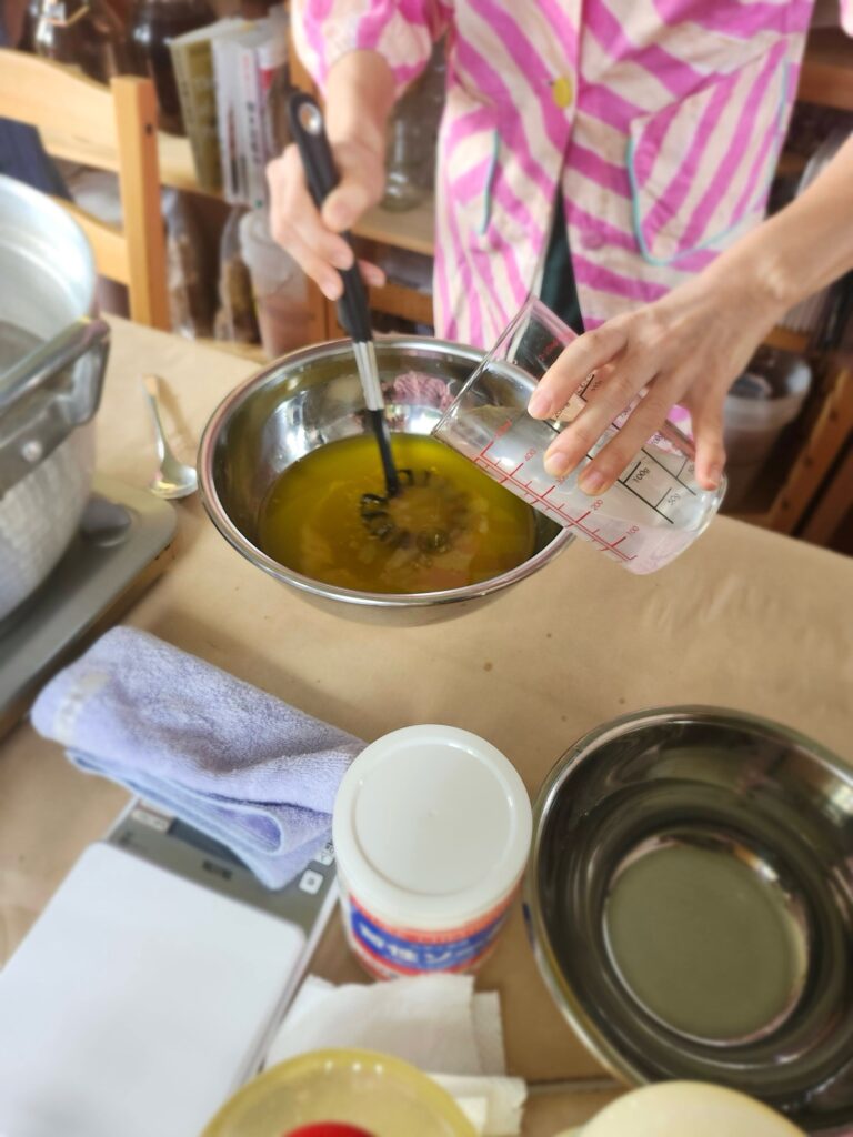 ほぼ皆さんで石けんのたねを仕込んでいただきました
